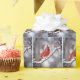 Cardeal vermelho em um galho de neve na floresta de inverno