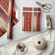 Se você está se perguntando que combinações de cores escolher para sua decoração de Natal e presentes este ano, eu criei coleções de padrões coordenadores para tornar a vida um pouco mais fácil. Este papel de embrulho apresenta um design de faixa vertical, ornamentado,, com efeito de brilho e de dobra, mostrado aqui em tons de vermelho, verde-sábio e ouro. "Fa La La La La" vertical em ouro adiciona um sotaque divertido. Procure ID1009 para ver outros produtos e padrões neste esquema de cores.