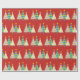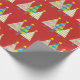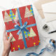 Wrap your holiday gifts with charm and color using this festive red Christmas wrapping paper. The repeating pattern features three whimsical Christmas trees with modern geometric, musical note, and polka dot designs—topped with golden stars on a rich red background.