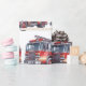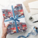 Um Padrão De Papel Embalado De Caminhões De Fogo Vermelho Para Festa De Aniversário Para Crianças
