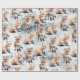 Um papel de embrulho com filhotes de raposa vermelha pintados a aquarelas em detalhes lindos, em uma cena de neve invertida.