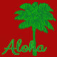 Green palm trees and aloha text on a rich Christmas red background. A fun tropical look for your holiday tropical Christmas gifting.