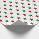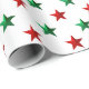 Um papel festivo de embrulho para a época natalícia, com estrelas vermelhas e verdes sobre fundo branco. Esta cor de fundo pode ser alterada para qualquer cor da sua escolha. Vá para o Painel de Design e, no lado direito, selecione "Fundo" e selecione. sua cor.