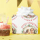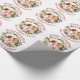 Vermelho Feliz Natal e papel de embrulho de fotos de festas de coroa floral. Personalize com sua própria foto e texto.