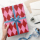 Geometric Maroon Red and Pink Color Harlequin Diamonds Checkered Shapes Pattern Design