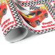 Carro Race Vermelho Personalizado Papel de Embrulhamento de Presente de Aniversário. Use o botão personalizar detalhes para editar o nome e o número na porta e no capô do carro.