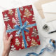 Este papel de embrulho de Natal tem um design de Cookies de Pão de Árvore com um fundo de padrão vermelho. Esta mão pintada com design tem 4 neve de gelo cobertas de árvores de Natal juntamente com biscoitos de flocos de neve e uma safra chamada padrão de flocos de neve no fundo. Um excelente padrão de biscoito de Natal para decorar seus presentes este ano durante a temporada de férias. Você pode fazer o padrão menor ou maior.
