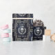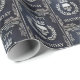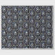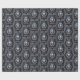 Papel de revestimento azul luxuoso escuro, enfeitado com alivio prateado gótico real apresentando um ameaçador crânio prateado flanqueado por uma coroa de louros brilhante de folhas prateadas e, finalmente, uma coroa prateada gloriosa brilhando com uma luz pálida brilhante simbolizando uma antiga linhagem real. Perfeito para um Natal ou aniversário com tema real com um toque gótico real. O papel de embrulho perfeito para amantes de tudo o escuro e gótico, arcana, bruxaria e horror macabro.