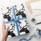 Uma rena de Natal legal e engraçada com Enfeites de natal pendurados nas suas colegas pretas em silhueta preta sobre um fundo branco. Você pode alterar as imagens e a cor de fundo e adicionar seu próprio texto para personalizar este papel de empacotamento para um papel de empacotamento personalizado ou deixá-lo preto e branco para apresentar uma imagem sofisticada.