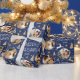 Torne seus presentes de férias especiais com papel personalizado de empacotamento de fotos. Este elegante design apresenta ilustrações ao estilo de vintage inspiradas pela opulência da era Art Deco. Inclui renas saltitantes, árvores festivas de Natal e estrelas, em conjunto com na moda retro tipografia. Personalize o modelo com três fotos favoritas e o nome do destinatário ou o sobrenome da sua família. Um design único que combina o estilo do eterno com uma reviravolta moderna! Este pacote de presentes de padrão uniforme está disponível com um acabamento mate ou brilhante. Cores impressas: azul escuro da meia-noite, branco e uma cor dourada.