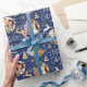 Papel De Presente Reindeer de Natal Elegante Foto Azul-Meia-Noite