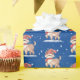 Rés de Natal com chapéu e flocos de neve. A cor de fundo azul pode ser alterada.