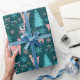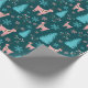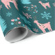 "Reindeer Holiday Snowflakes Berry Branch Pine Wrapping Paper" inclui renas graciosas, flocos de neve e galhos delicados em rosa e azul pastel, ideais para uma apresentação de feriados brancos.