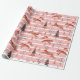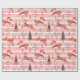 Papel De Presente Reindeer Snowflakes Árvores Rosa e Natal Branco