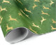 Papel De Presente Reindeers Dourados em Verde Escuro