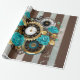 Papel De Presente Relógio e Rosas de Turquesa em Striping