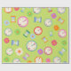 Papel De Presente Relógios modernos e flores, festa verde
