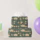 Rena de Natal russa As folhas de papel de enrolar com aquarelas de aquarela festiva apresentam um padrão festivo de Natal com renas de Natal rústicas com biscoitos de Natal, decorações e sotaques florais em fundo verde. Perfeito para embrulho de presente de Natal. Elaborado por ©Evco Holidays www.zazzle.com/store/evcoholidays