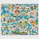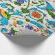 PAPEL DE PRESENTE RENAISSANCE FLORENTINA REDOEMOINHOS FLORAIS AZUIS,