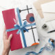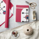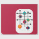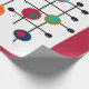 Este papel de embrulho tem um design moderno do século médio de um retângulo magenta com um retângulo branco no fundo com uma grelha preta com círculos retrorreflectores.