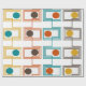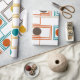 Este papel de embrulho tem um design moderno do século médio inspirado por Kandinsky, constituído por conjuntos de retângulos formados por uma linha contínua, cada um com um dentro oval em cores retrógradas de laranja, castanho, ouro e turquesa sobre fundo branco. Se você gosta do design, mas prefere cores diferentes, me mande mensagem.