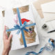 Ouro bonito e amigável vestindo um chapéu de Papai Noel! Perfeito para o amante do cão