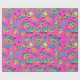 Papel de embrulho fino, cor-de-rosa-néon, cor-de-rosa, dos anos 1980, modelado com itens da década de 80: cubo de Rubik, leitores de fita cassete, doces, arranhões e muito mais.