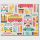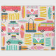 Este padrão lúdico e vibrante mostra carrinhas coloridas, pranchas de surf e equipamentos de praia, como toalhas e bolsas de praia listradas. As cores brilhantes e os elementos balísticos dão uma vibração nostálgica de viagem de praia, completa com pranchas empilhadas sobre as furgonetas, evocando memórias de dias divertidos no sol. O fundo bege suave melhora a paleta alegre de cores, fazer o design com vida e energia.