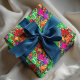 Arco vermelho de safra, cor branca, festas de papel verde de embrulho. Celebrar as férias e o Natal com um belo papel colorido de embrulho em todos os seus presentes.