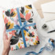 A Colorful Wrapping Paper Designed In Retro Colors Of Black, Teal, Gold And Orange Shaped In A Floral Leaf Design