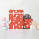 papel de embrulho de presente de padrão atômico em vermelho para os feriados.