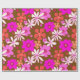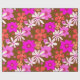 Craft or wrapping paper with big, retro flowers art design. Pink, orange and off-white, hand drawn floral pattern printed over a golden brown. High quality paper comes on a roll in your choice of length.
