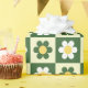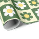 Papel De Presente Retro Sage Green and Cream Daisy Checkerboard