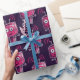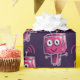 Um robot bonito embrulhando papel com um padrão criado de um rabisco digital de um pequeno robô divertido com uma cabeça de saco de papel em cores rosa e roxo.