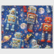 Description embark on a journey through the stars with this vibrant galactic robot exploration design set against a deep shimmering nebula filled with twinkling stars and drifting golden asteroids. This artwork features a charming squad of retro style 10 robots the central character with its bold red lightning bolt and bright yellow eyes stands out in high definition detail accompanied by its mechanical companions in classic silver and forest green. The playful sticker style white outlines around the robots give the piece of modern pop art feel while the cosmic backdrop adds a sense of infinite wonder it's a perfect blend of nostalgic mechanical charm and the vast beauty