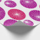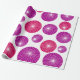 Este papel de embrulho tem uma design moderna do século médio de círculos roxos e cor-de-rosa com estrelas brancas, todas num campo de branco.
