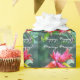 Esta fotografia original de ZoeSPEAK, de romãs crescendo em uma árvore em um jardim tropical, é uma vista aproximada. O fruto em desenvolvimento está em uma bela tonalidade vermelha - romã! E as folhas verdes da árvore frutífera curvam-se de forma escultural ao redor da forma das romãs, que parecem sinos abertos contra o fundo verde escuro. Há um texto, em letra cursiva branca, que diz "Alegre, Alegre!" e "Feliz, Feliz!". Isso está configurado para personalizar de acordo com as suas necessidades. Ou pode ser excluído, se preferir.