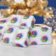 Rosa grande e florescente com pétalas arco-íris sobre fundo branco, pintadas com pedaços de tinta colorida e brilhante. 3d