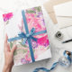 Um bonito papel de embrulho floral de rosa. O design é cor-de-rosa floral sobre fundo branco. Escolha entre uma faixa de tipos de papel. O papel está sozinho, mas faz parte de um conjunto de papéis de carta correspondente de Apenas Designs Finos.