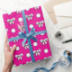 Papel De Presente Rosa Vibrante e Pontos Brancos com Laços