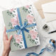 Papel de embrulho simples e elegante com rosas cor-de-rosa, verde suave e branco - perfeito para casamentos, chá de noiva e aniversários.