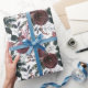 Papel De Presente Rosas Borgonha Floral de Feriado, Pine Verde e Hol