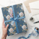 Papel De Presente Rosas brancas e folhas de ouro sobre fundo azul