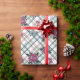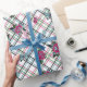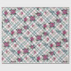 Este papel de embrulho tem uma rosa de tatuagem tradicional com borboletas de crânio na xadrez. Há três rosas diferentes e três borboletas diferentes no design. As borboletas têm pequenos crânios nas designs. Esta é a cinza rosa quente e azul. Você pode fazer o design neste papel de embalagem maior ou pequeno, seja avisado que este é um azulejo de meia gota.