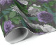 Este papel de embrulho tem um padrão floral elegante de rosas em rosas brancos e roxos numa relíquia de jardim sobre fundo preto. Você pode fazer o padrão nesse papel de embalagem maior ou menor, se quiser. Um adorável e elegante padrão de rosas florais que é excelente para plástico-presente para alguém que ama rosas ou flores.