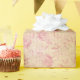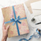 Este elegante papel de embrulho floral perfeito para a dissociação e o invólucro de prendas de casamento apresenta rosas cor-de-rosa pinceladas com um padrão de licença úmida no fundo e uma camada de ouro de shimmer. ©Tim Coffey