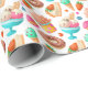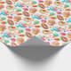 Padrão ilustrado, bonito e divertido, com rosquinhas com glacé de chocolate e aspersores, cones de sorvete com chip de chocolate, sundaes de sorvete de chocolate em taças cor-de-rosa, sundaes de sorvete neapolítico em taças azuis, cheesecakes de morango, morangos, mirtilos, macarões cor-de-rosa brilhante com enchimento amarelo e pequenos corações em um padrão uniforme. Um design de galinha para qualquer ocasião.