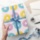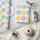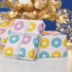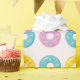 rosquinhas brancas, foscos e polvilhadas em amarelo pastel, azul e rosa