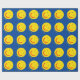 Um sol amarelo de olhos verdes sorrindo sobre um fundo azul. Adicione seu próprio texto. Você pode alterar a cor do texto e do plano de fundo.