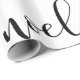 Este papel de envolvimento à moda do feriado caracteriza a palavra "noel" repetido na caligrafia preta moderna.